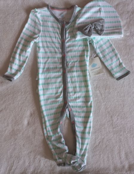 Cloud island 6-9M white and green sleeper with matching cap