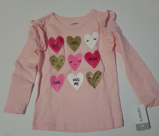 Carter’s 3T pink long sleeve top with frill on shoulders and hearts on top