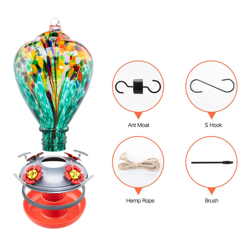 Glass Blown Hummingbird Feeders 32 oz