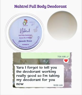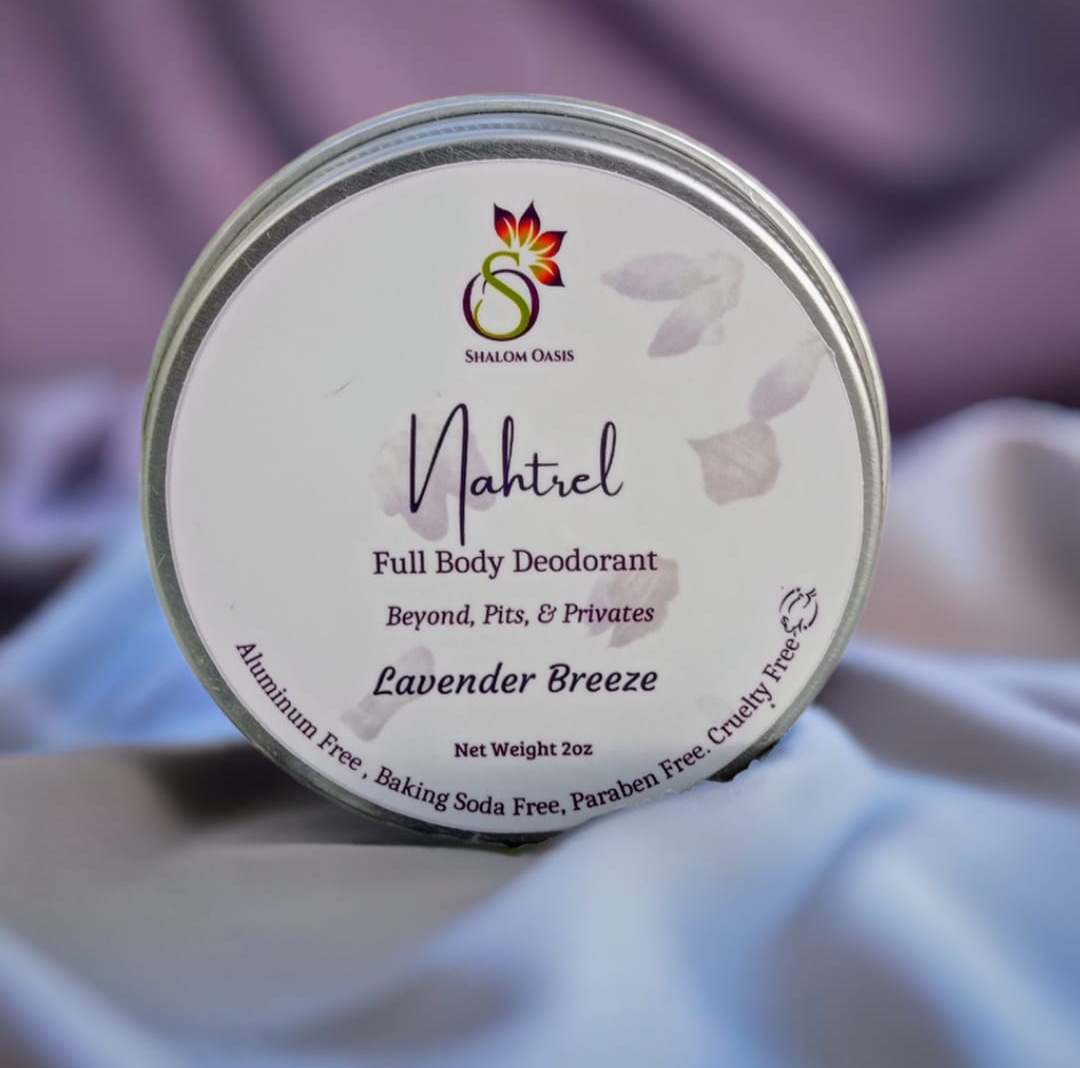 Our Nahtrel Full Body Deodorant neutralizes odor without exposing your skin to harmful chemicals. Crafted with nutrient rich oils, clays, and minerals, this deodorant is gentle enough for children yet powerful enough for adults. A clean scent, and a clean routine powered by nature.