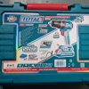 TOTAL 1500W Rotary Hammer – Heavy-duty tool for drilling, hammering, and chiseling. Features 3-in-1 function, anti-vibration system, and powerful 1500W motor. Comes with grease, auxiliary handle, 5 accessories, key for grease cap, and tool case. Ideal for concrete, brick, and masonry work.