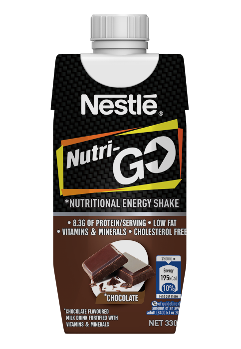 NESTLÉ® NUTRI-GO is a delicious energy shake with a unique nutritional profile to help fuel your day. Source of Protein -Low Fat, Less Calories -Cholesterol Free -Less Added Sugar -Fortified with Vitamins & Minerals such as: Vitamins B1, B2, B3, B5, B7,