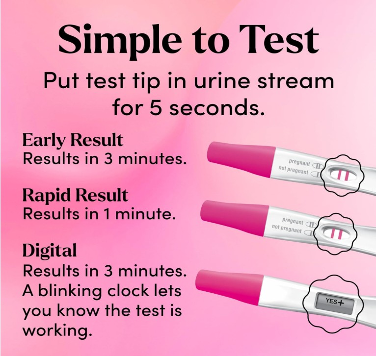 - Includes 3 pregnancy test sticks – 1 Early Result, 1 Digital, and 1 Rapid Result