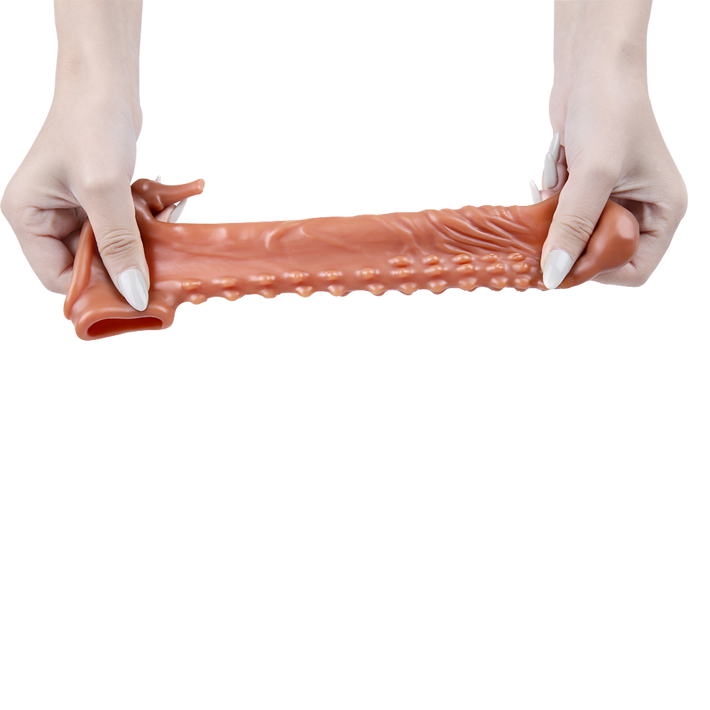 6.7 Inch Ultra Ribbed Penis Sleeve with Clit Stimulator, Bullet, Condom Sleeve, Extender Sleeve